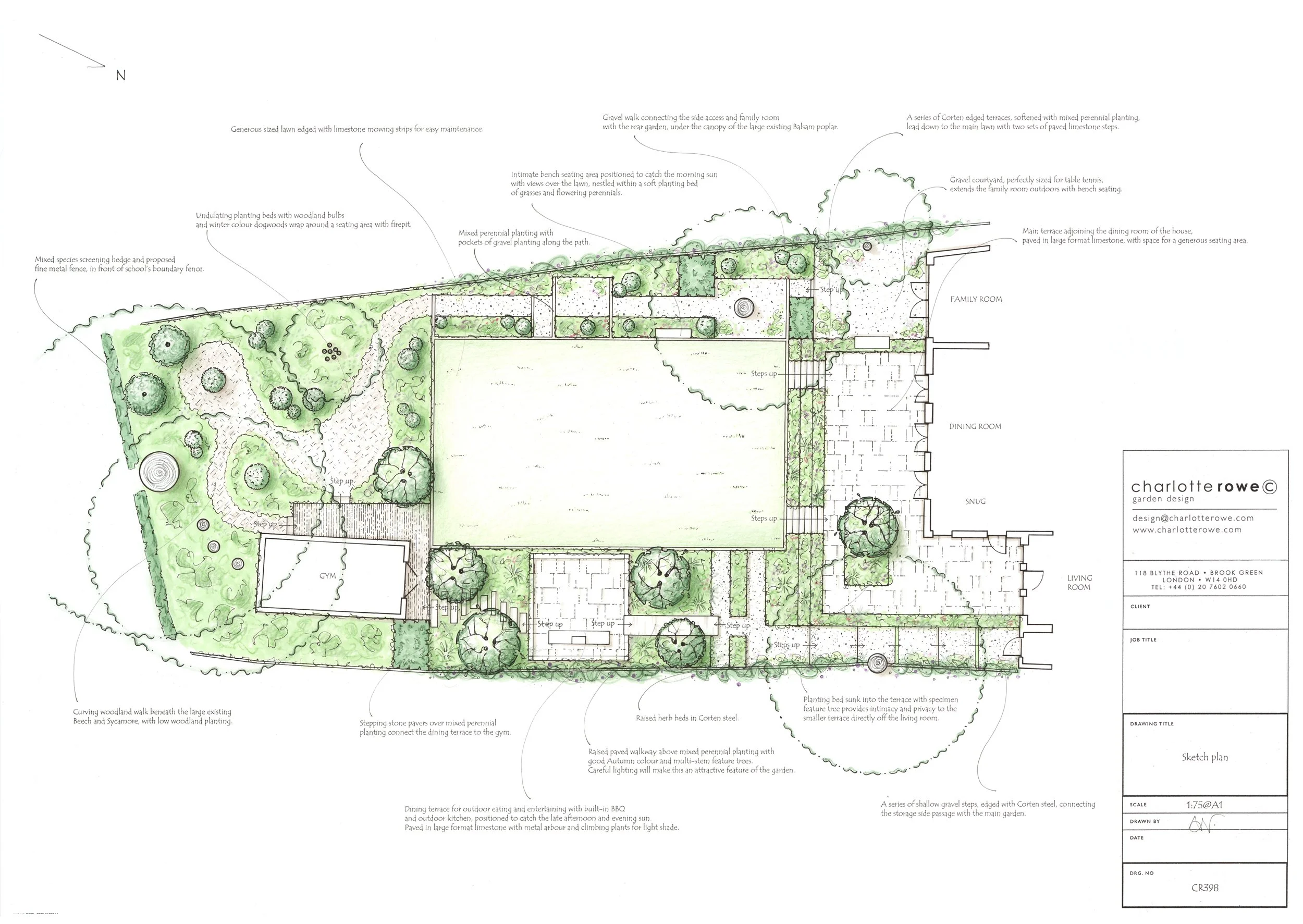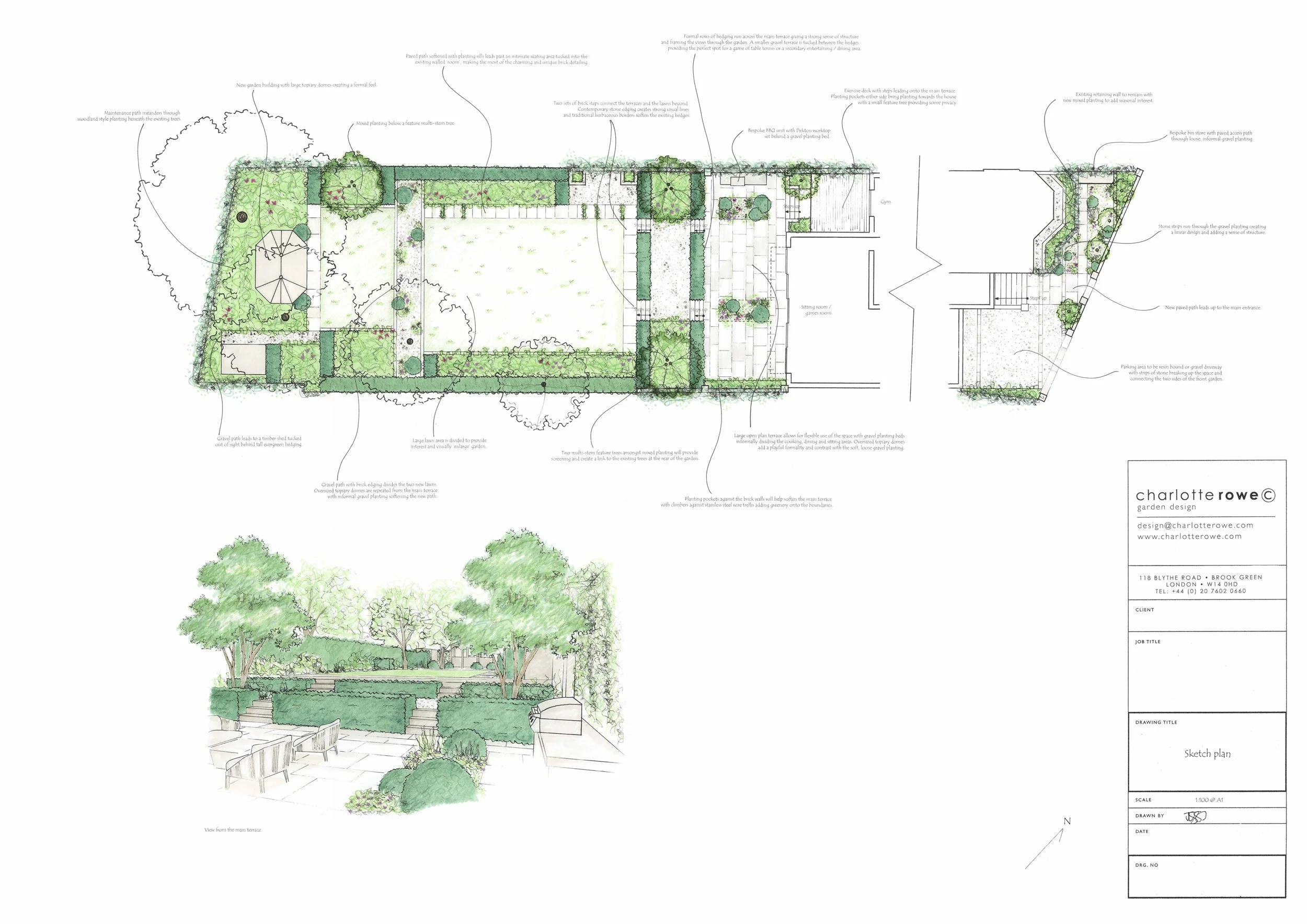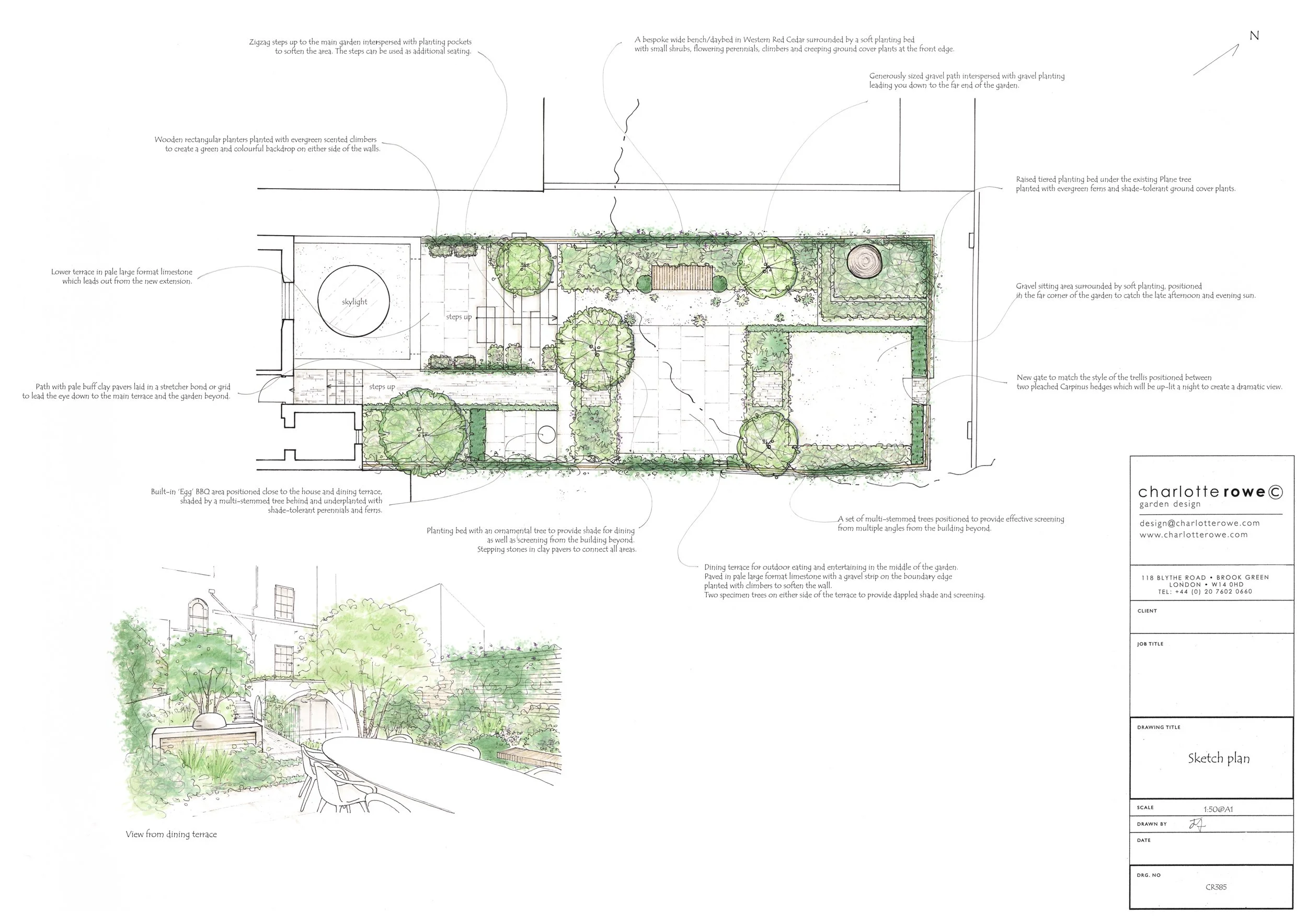 Over the last year we have designed a number of new gardens in the London area - some of them very small and some a little larger. Here are some of those designs shown in original hand rendered drawings.