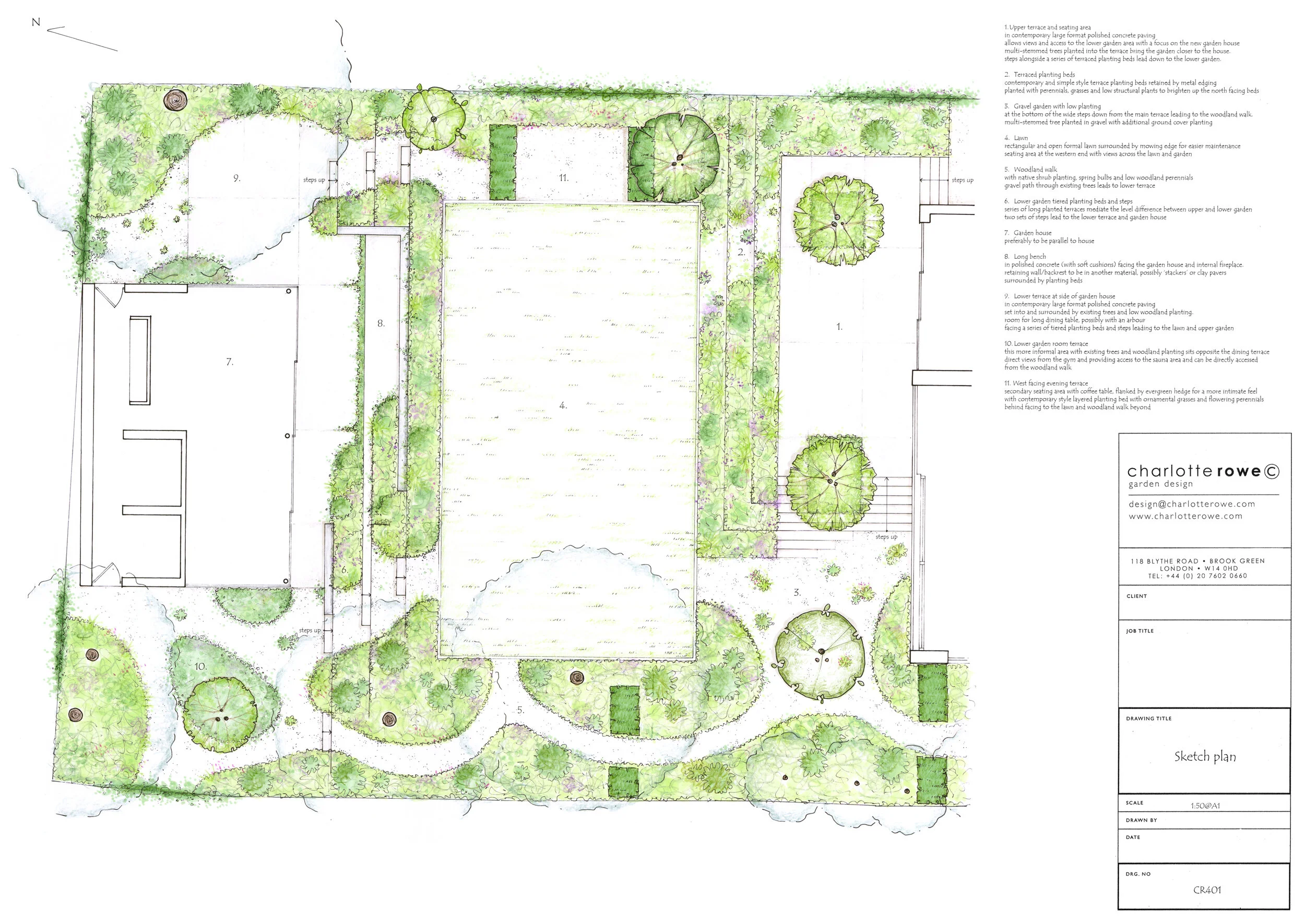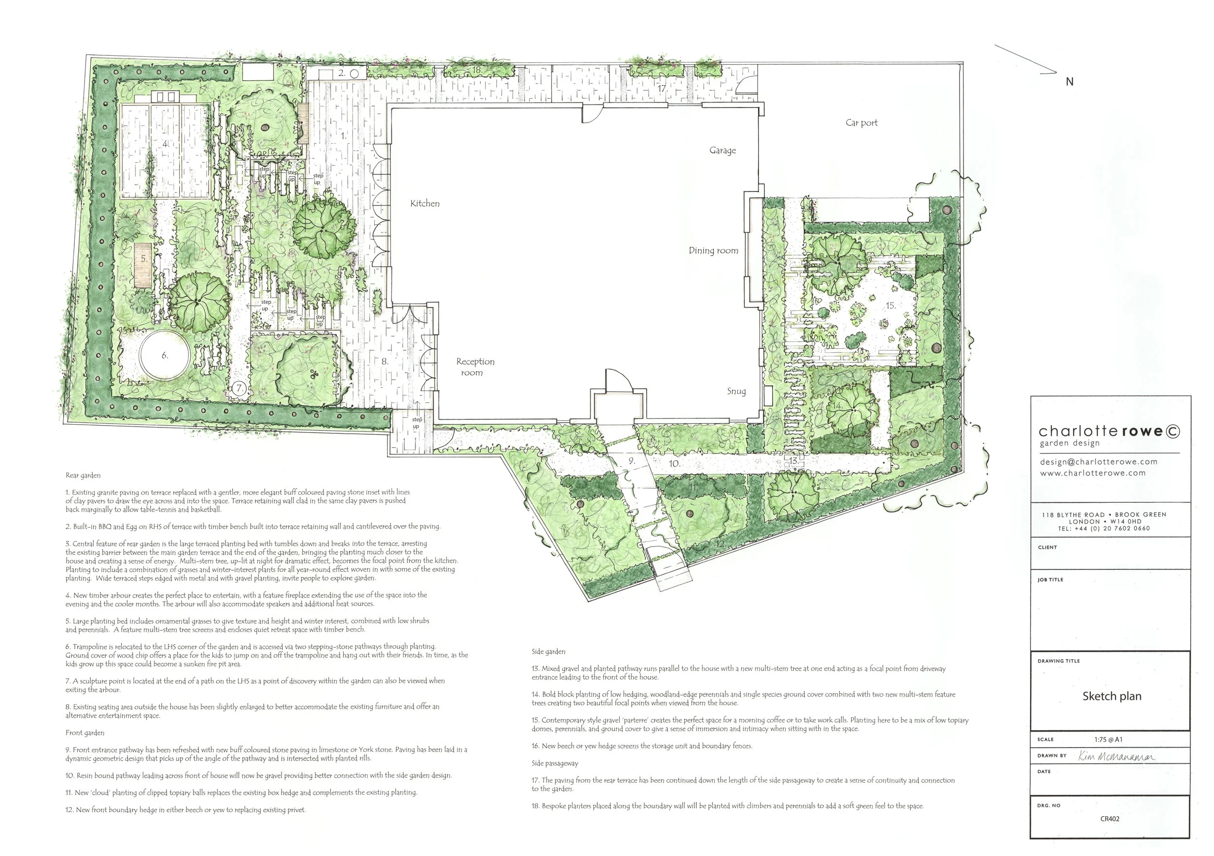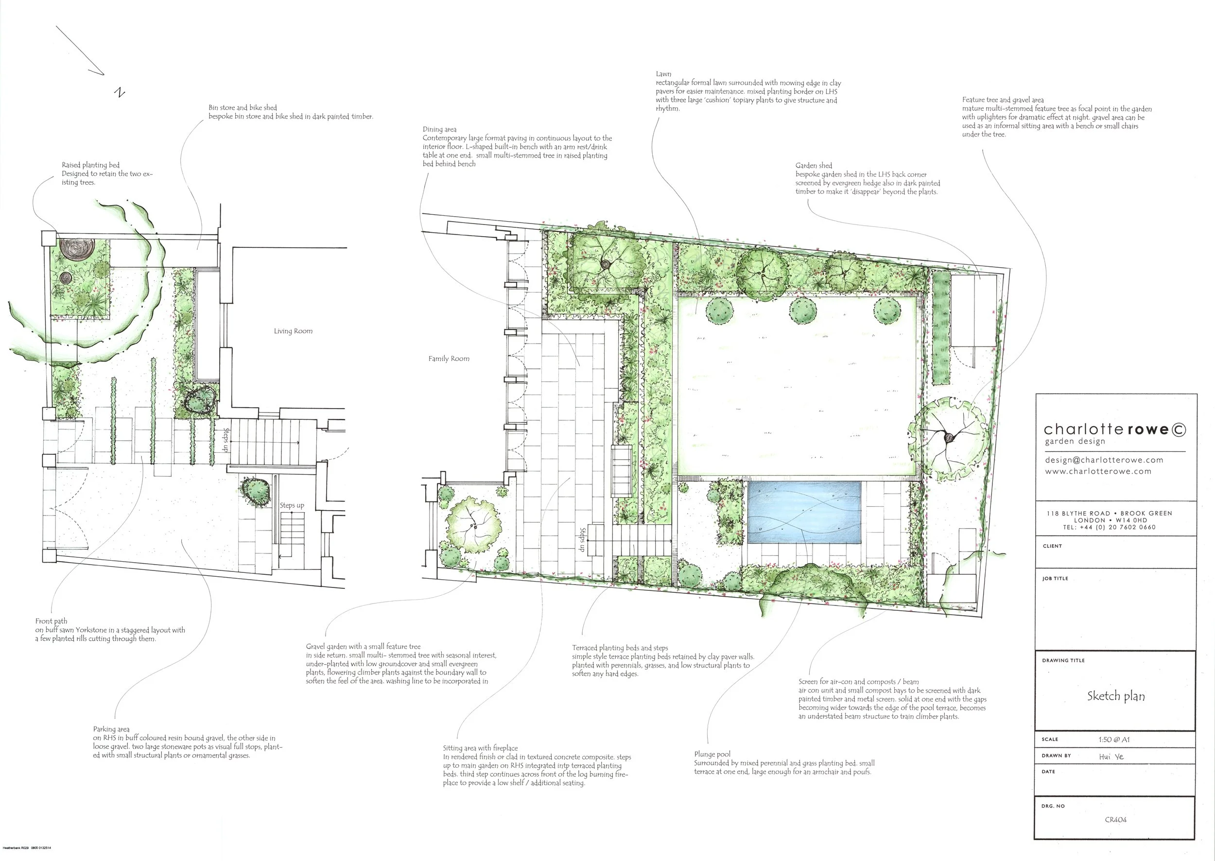 Over the last year we have designed a number of new gardens in the London area - some of them very small and some a little larger. Here are some of those designs shown in original hand rendered drawings.