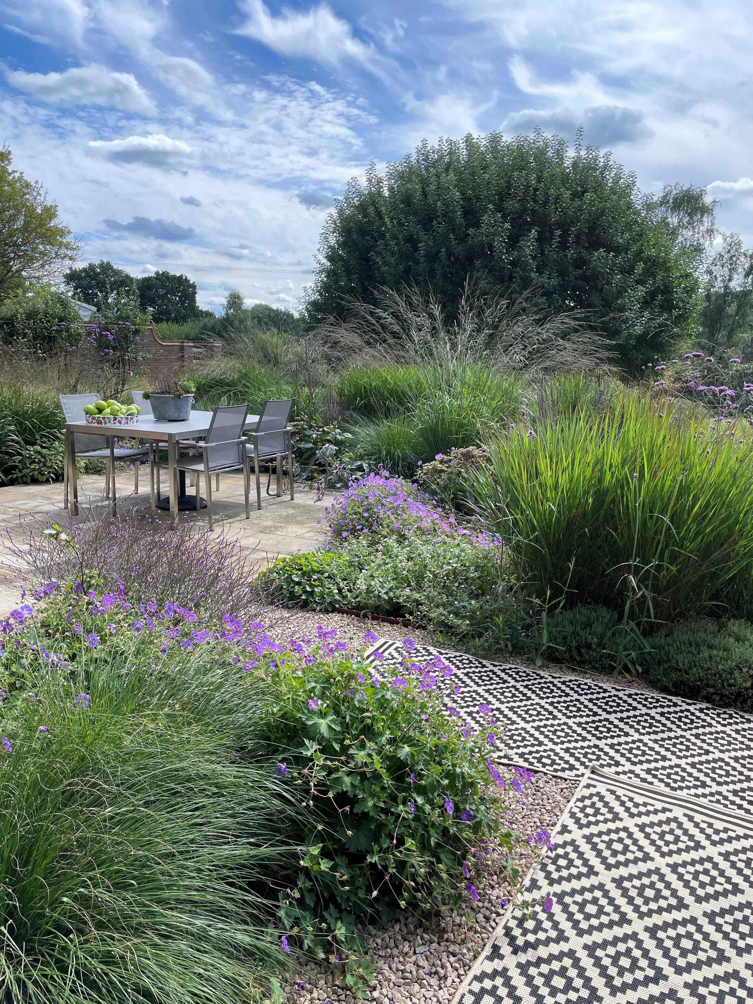 The main terrace was designed on the South West facing side of the house with a combination of paving, gravel areas and extensive planting, some of it in the gravel, leading on to the pathway and gate to the walled garden. Apart from some meadow planting and new trees, the rest of the garden behind the house down to the fields beyond were left largely untouched as the main focus was on the wonderful valley below.